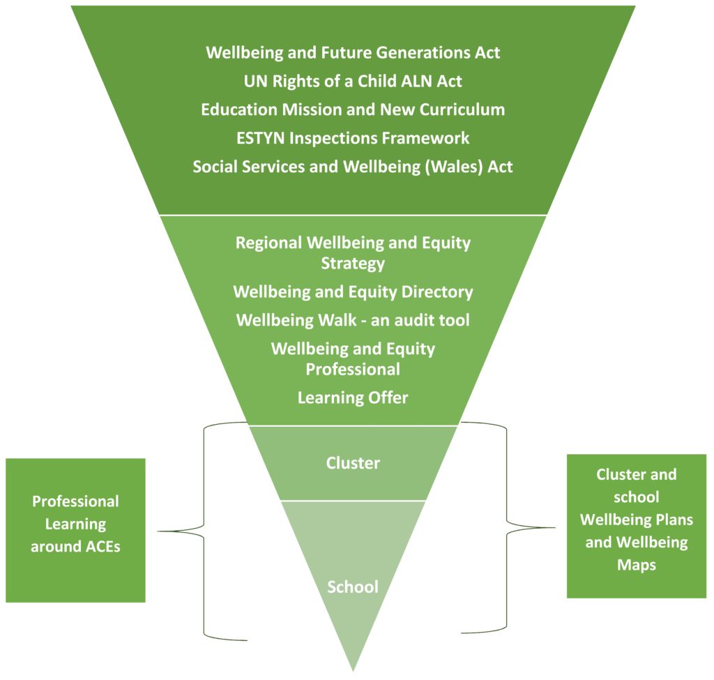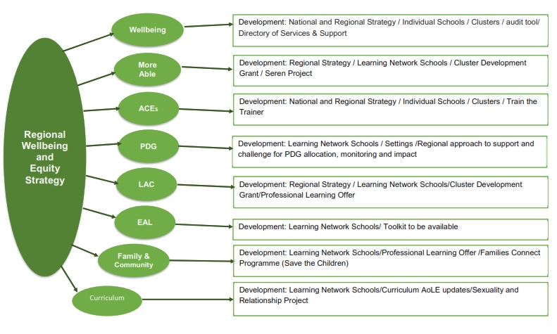 As a region we have a Wellbeing and Equity Strategy governed by a multi-agency strategy group, this is supported by a ‘Wellbeing Walk’ an audit tool to assist schools developing this agenda throughout their schools. All our schools and settings have identified a key member of staff to become a Wellbeing Lead.